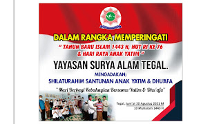 Bersyukur kepada Allah Swt yang maha kuasa Alhamdulillah Acara kegiatan Santunan Hari Lebaran Yatim Yayasan Surya Alam Tegal, Jum’at 20 Agustus 2021, dapat terlaksana dengan baik dan lancar