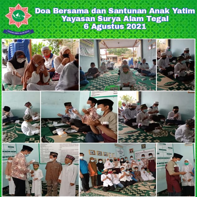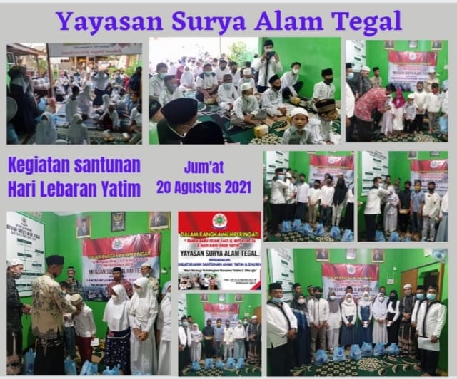 Bersyukur kepada Allah Swt yang maha kuasa Alhamdulillah Acara kegiatan Santunan Hari Lebaran Yatim Yayasan Surya Alam Tegal, Jum’at 20 Agustus 2021, dapat terlaksana dengan baik dan lancar